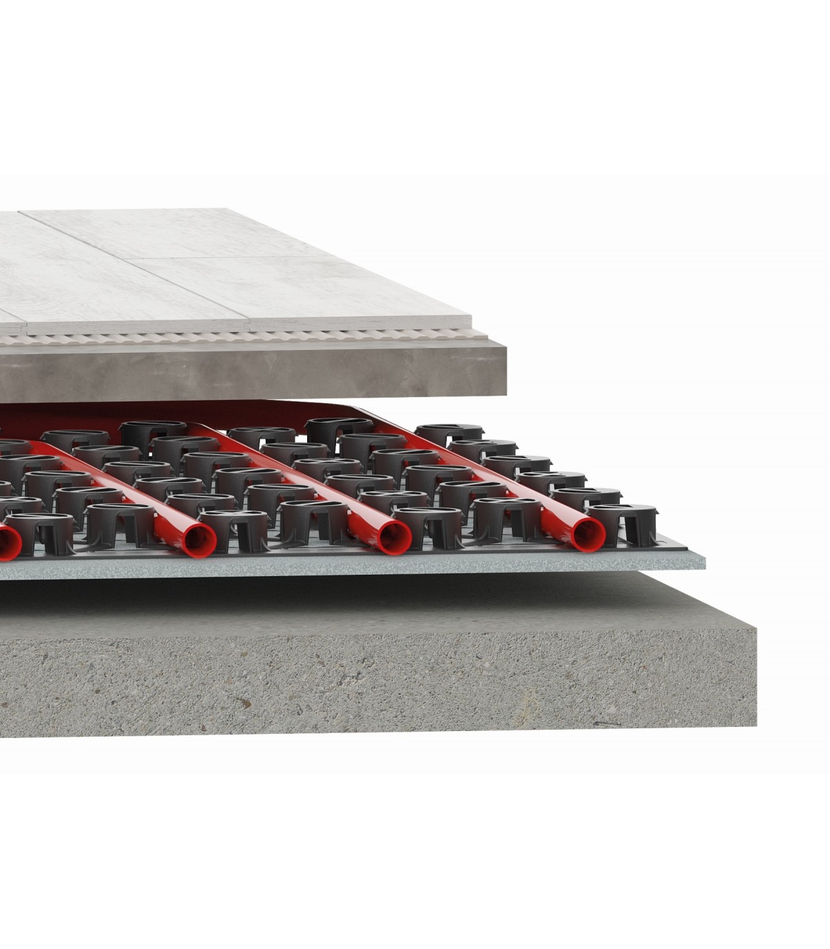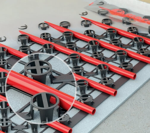 Ο εγκαταστάτης χειρίζεται με μεγάλη ευκολία την μορφόπλακα spider και τοποθετεί με ταχύτητα τους σωλήνες στα ειδικά κουμπώματα της μορφόπλακας, με βήμα 5cm.